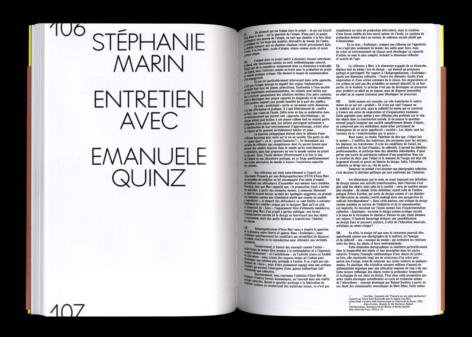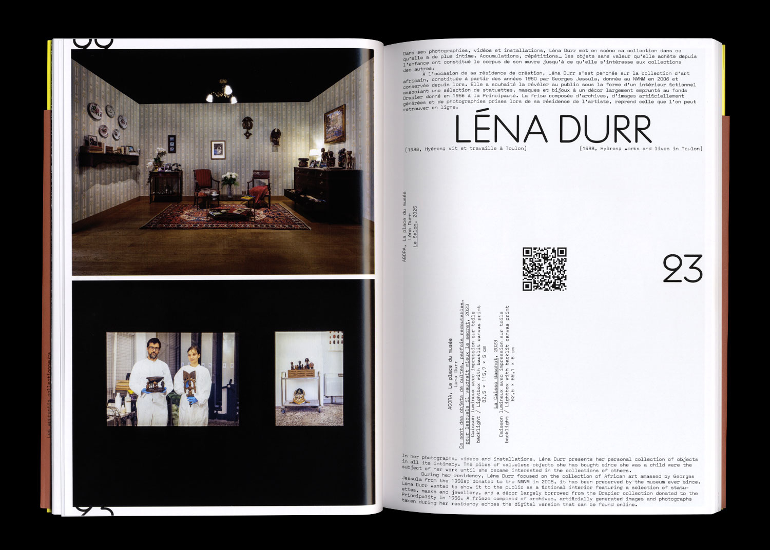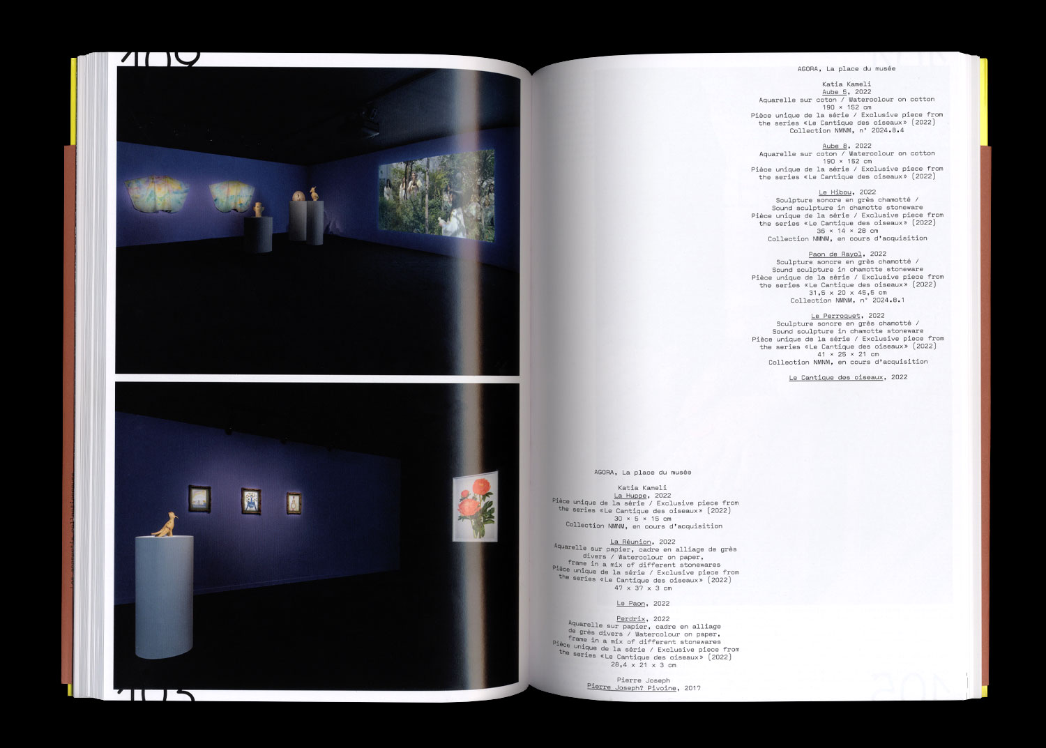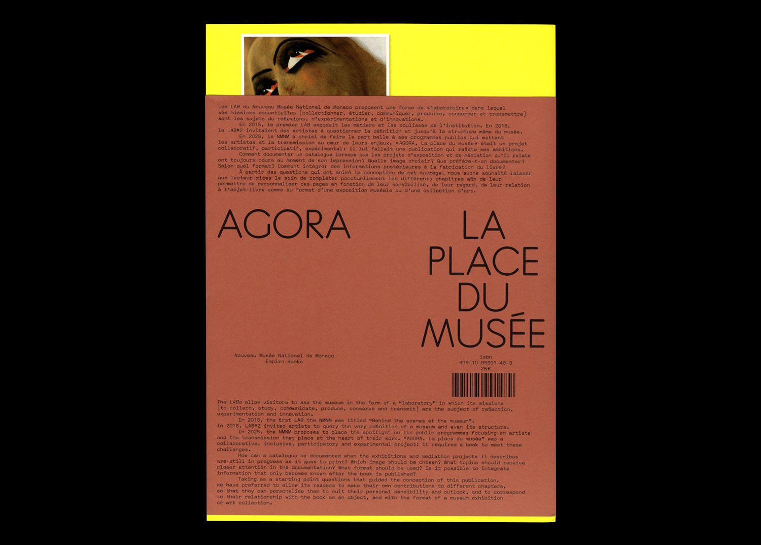 En 2025, le NMNM a choisi de faire la part belle à ses programmes publics qui mettent les artistes et la transmission au cœur de leurs enjeux. « AGORA, La place du musée » était un projet collaboratif, participatif, expérimental : il lui fallait une publication qui reflète ses ambitions. Comment documenter un catalogue lorsque que les projets d’exposition et de médiation qu’il relate ont toujours cours au moment de son impression ? Quelle image choisir ? Que préfère-t-on documenter ? Selon quel format ?