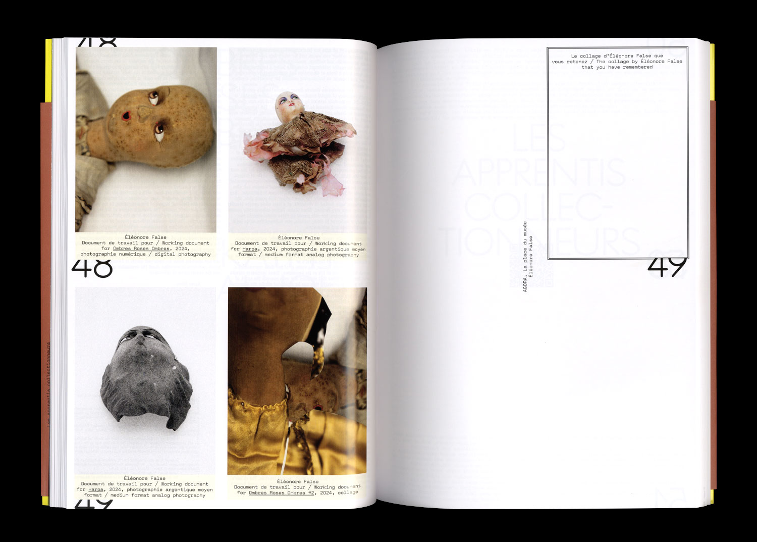 Comment intégrer des informations postérieures à la fabrication du livre ? À partir des questions qui ont animé la conception de cet ouvrage, nous avons souhaité laisser aux lecteur-rices le soin de compléter ponctuellement les différents chapitres afin de leur permettre de personnaliser ces pages en fonction de leur sensibilité, de leur regard, de leur relation à l’objet-livre comme au format d’une exposition muséale ou d’une collection d’art.