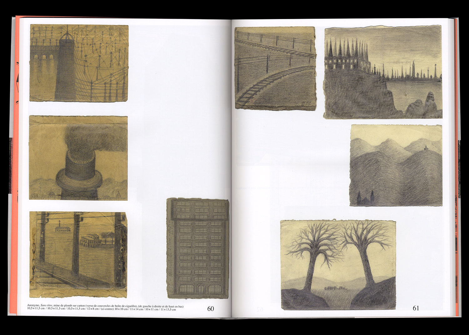 Anthropomorphic figures, intimate geographies, talismanic drawings, mental cartographies, Indian temples, and Baroque architecture are all encountered on this journey between the margins. On the farthest fringes of the imagination, lost in reality, splashed with stars, the “outsiders” are constantly redrawing the contours of a universe they invent as they go along. With freedom and otherness as their only compasses, they gather, collect, fill in, decipher, blacken, distort, amplify, organize, and build. Without filters, they embark on great celestial epics.