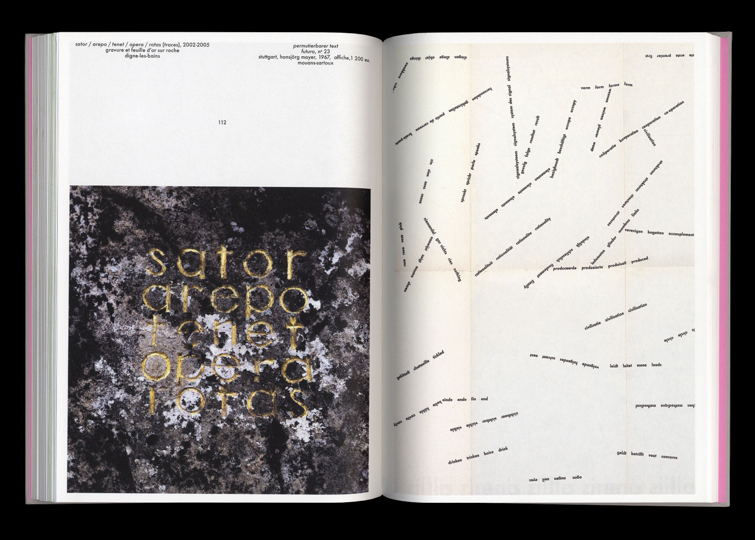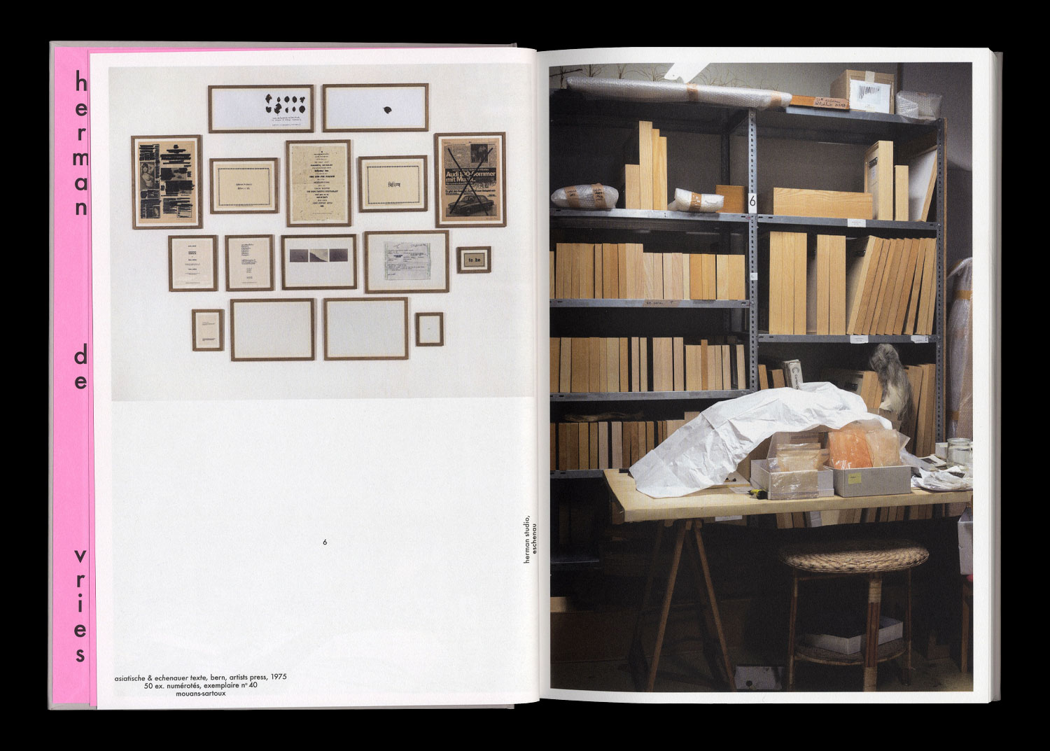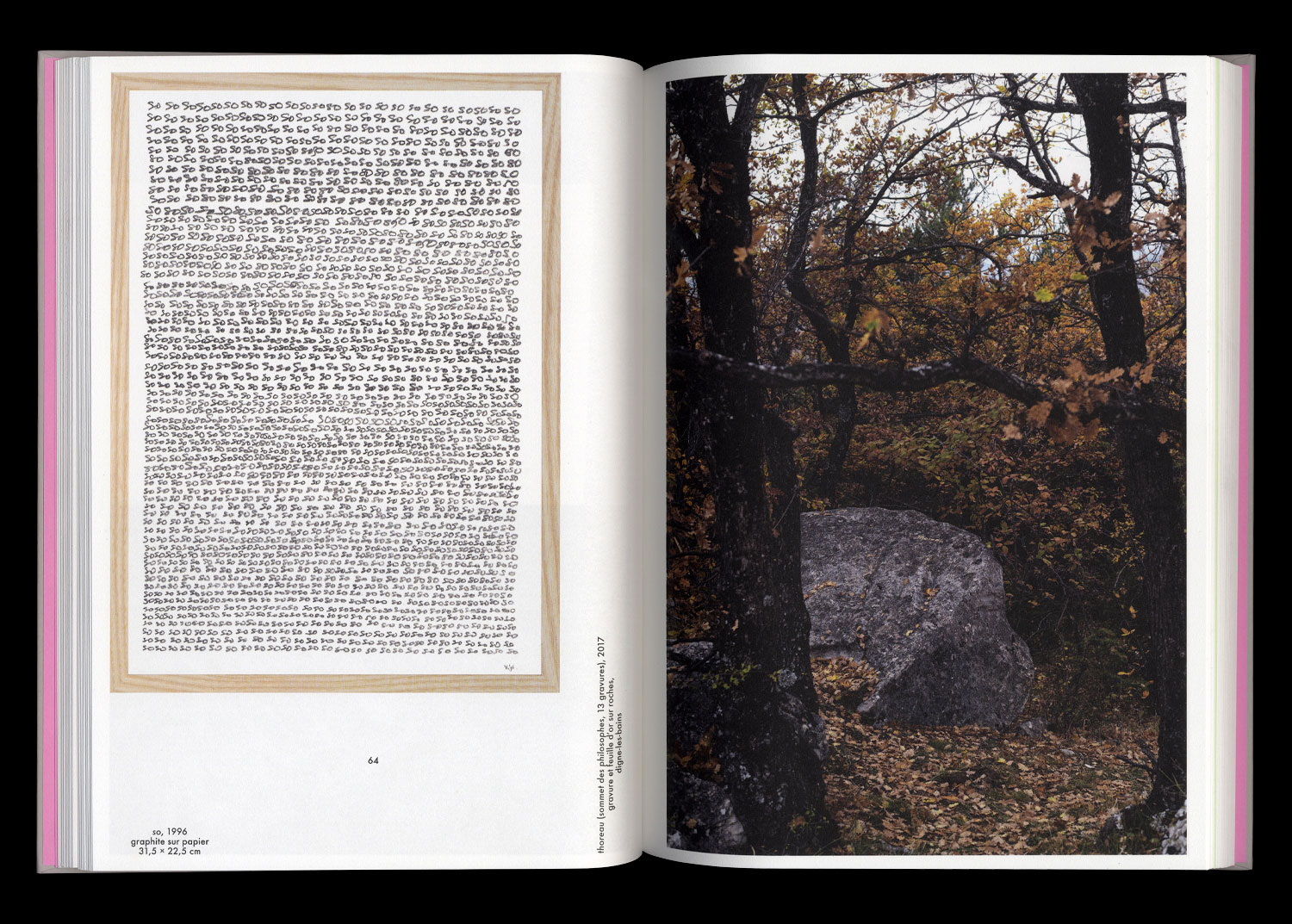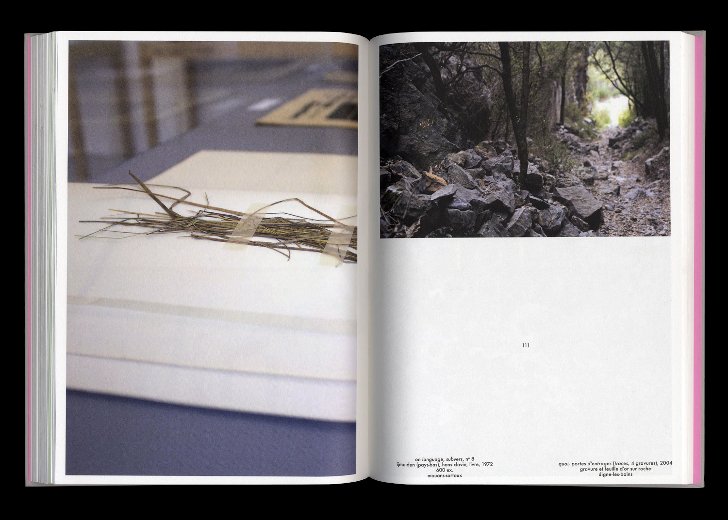 through a selection of exhibition views, documents of in-situ interventions and photographs of the artist in his studios and places of work, this book operates as a succession of visual and geographical wanderings, between exterior and interior, between context and detail, between the world and the work.