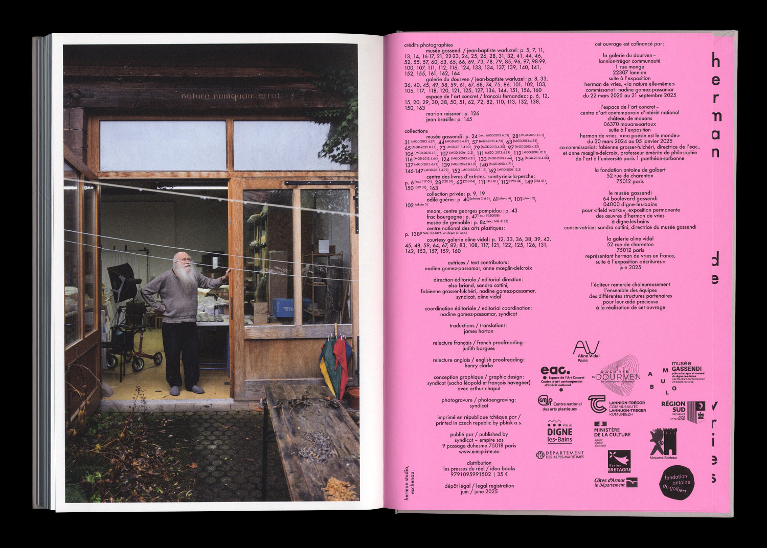 in 2024 and 2025, the eac., the dourven gallery, the aline vidal gallery, and the gassendi museum presented the work of herman de vries, reflecting their long-standing relationships with the artist.