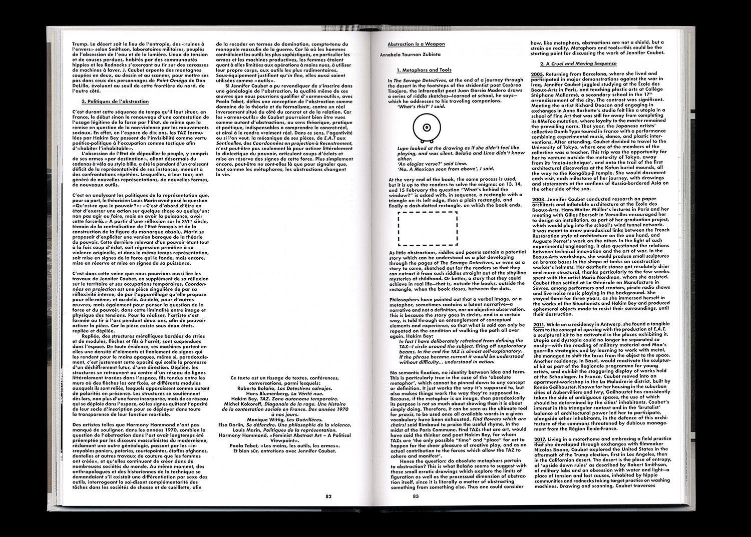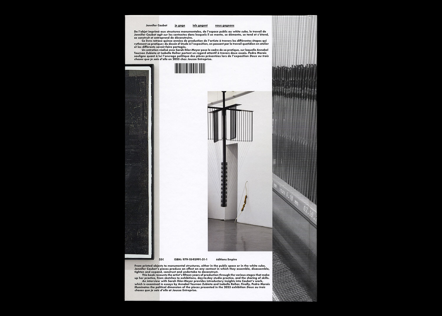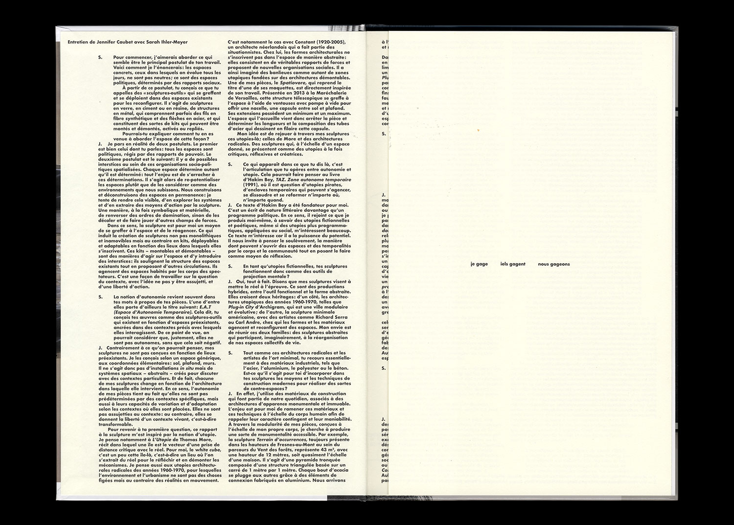 An interview with Sarah Ihler-Meyer provides introductory insights into Caubet’s work, which is examined in essays by Annabela Tournon Zubieta and Isabelle Reiher. Finally, Pedro Morais illuminates the political dimension of the pieces presented in the 2023 exhibition Deux ou trois choses que je sais d’elle at Jousse Entreprise.
