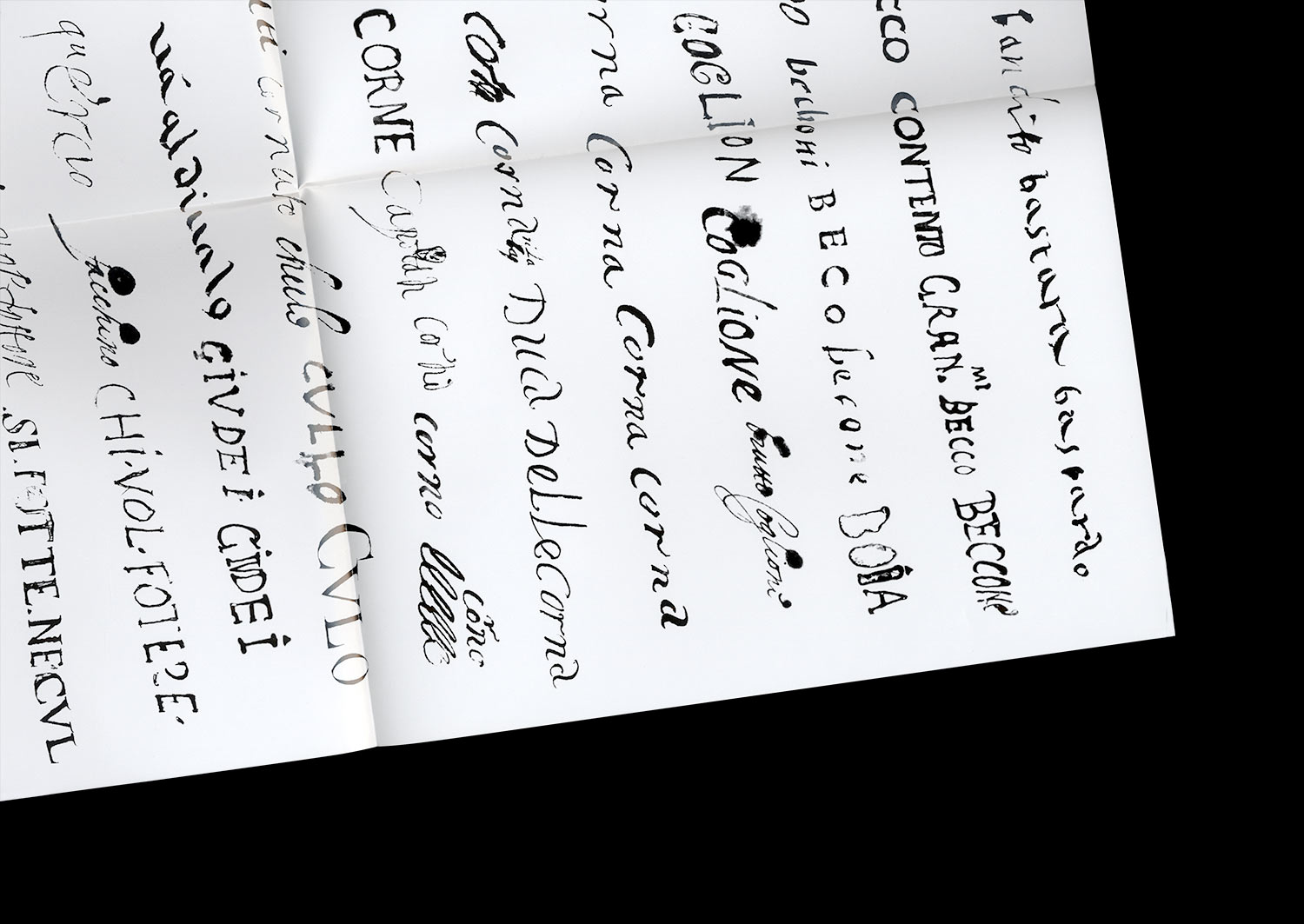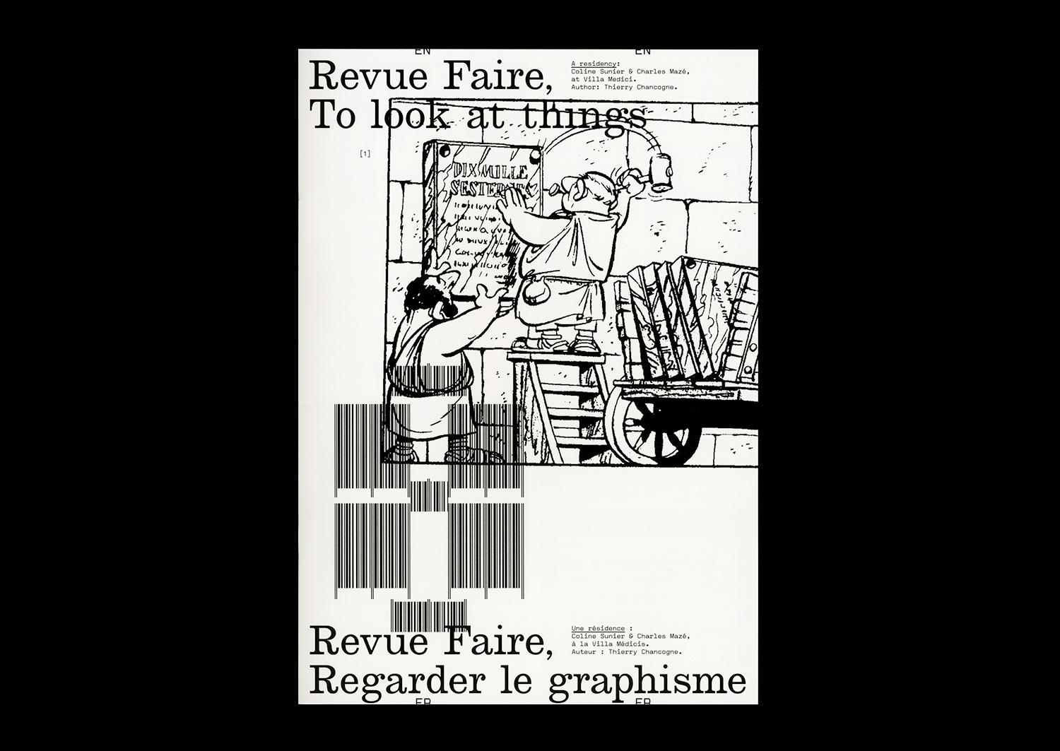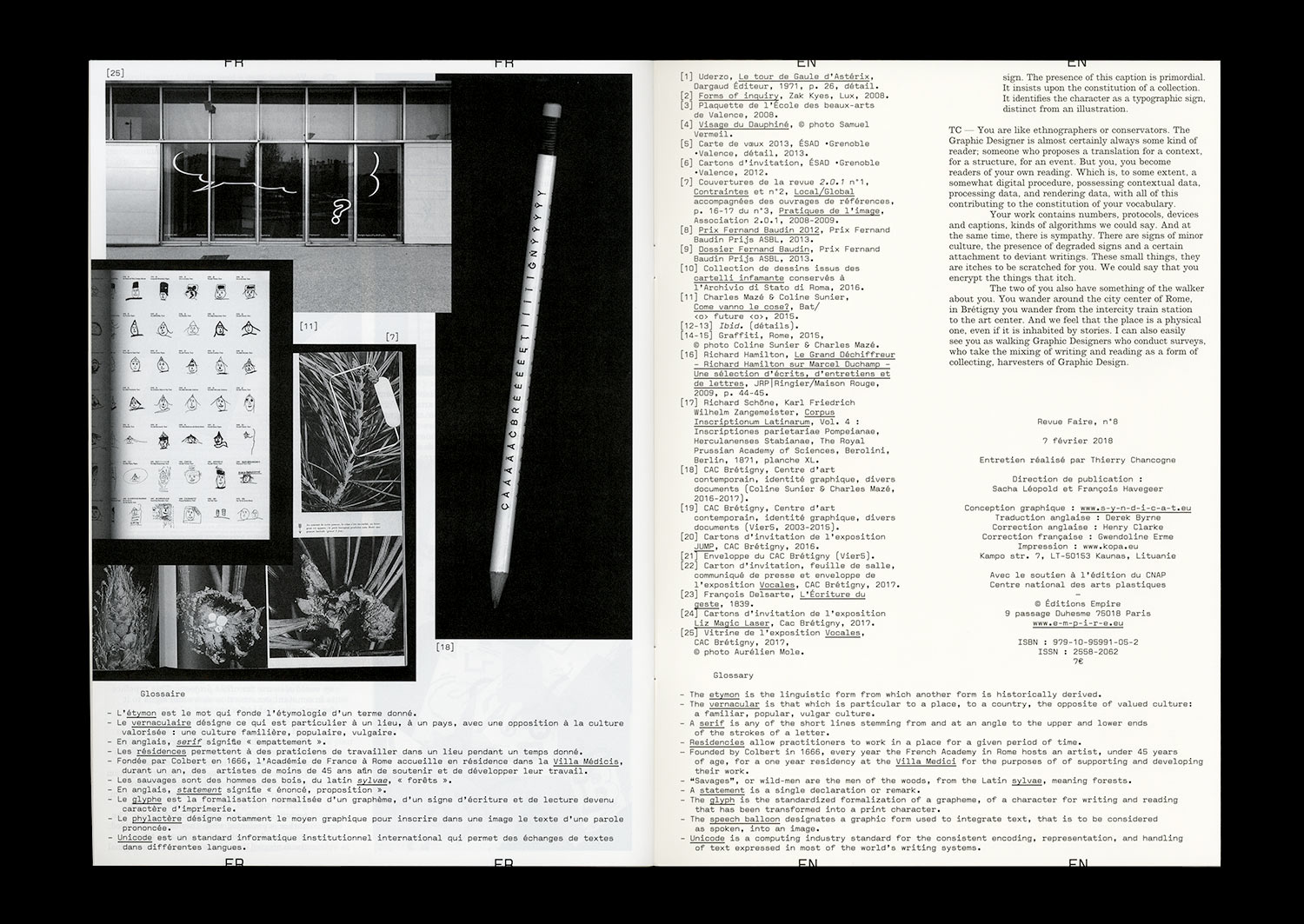 When she founded her studio with Charles Mazé, the duo continued the work of collection, which is at the same time one of the etymologies of reading, and one of the characteristics of the conceptual aesthetic of the list that emerged in the 1970s—first, in the re-casting of the Ésad Valence’s identity in 2012-2013; then in the work created during a residency at the Villa Médicis, Come vanno le cose?, dedicated to records of 1,512 graffiti found on the walls of Rome illustrating the portrait of a mysterious survivor, perhaps imagined, of the Red Brigades; and more recently in the identity developed for the Centre d’art contemporain in Brittany.
