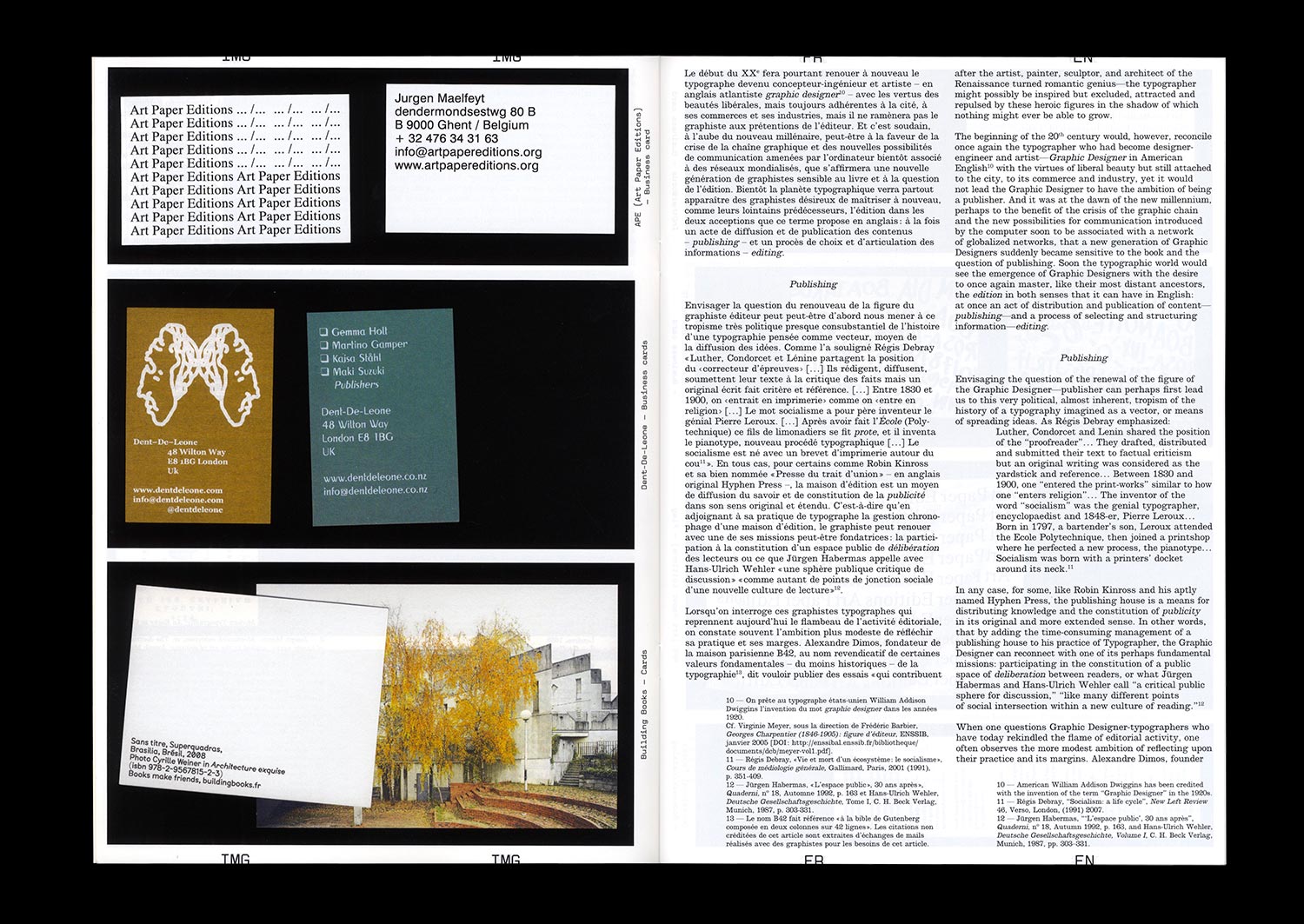 It would seem that the time has come to reassess this ancient tradition, with more and more graphic artists and designers choosing to establish their own publishing houses in order to defend their editorial approach in both senses of the word—that of “editing” and the choice and organization of graphic material, but also in the sense of “publishing”, applying a certain ethic to the distribution and advertising of the contents.