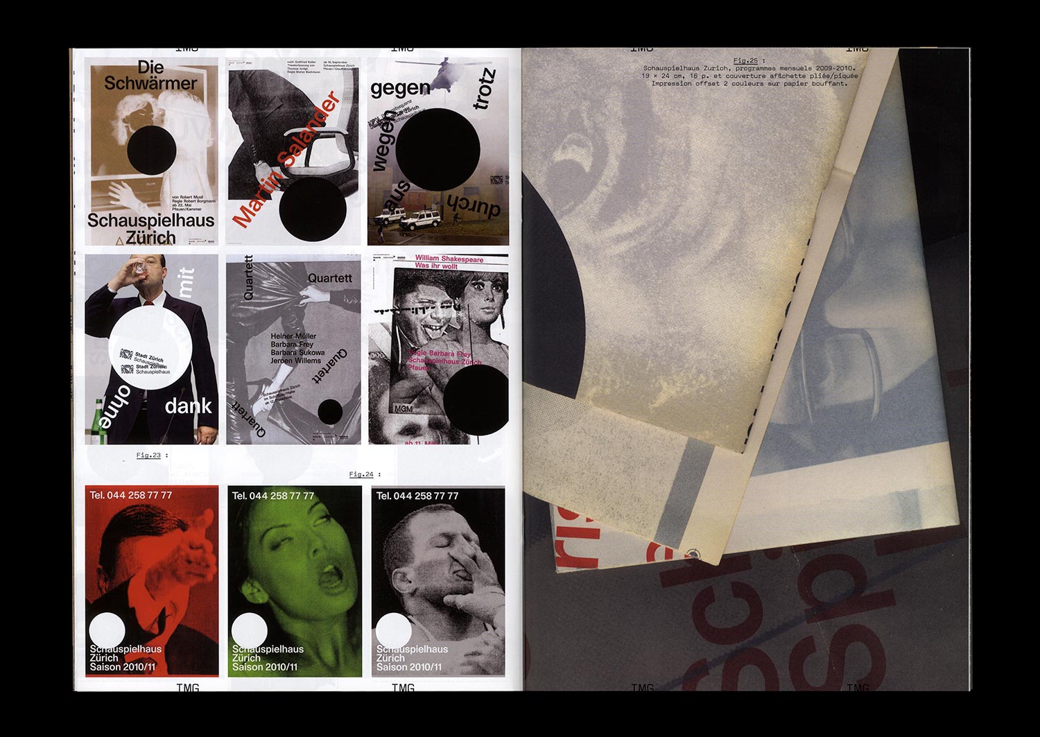 Designed by Cornel Windlin (with Gregor Huber), the communications of the Zürich Schauspielhaus for the 2009/10 and 2010/11 seasons appeared just as the collaboration between the designers and the theater ended: with the Grand Prix of the Brno Biennial in 2010, where they won first prize in the international competition, with an exhibition in Chaumont the following year at the same time as the Swiss Federal Design Award, a brief appearance in specialist magazines and on specialist sites, and then nothing at all. Once again, Cornel Windlin retreated into the shadows, leaving behind work which asserted itself through both its amplitude and completeness in the heavy silence which remained, and through the multifaceted mass of the media imagery that it reactivated. A series of seasonal posters, event posters, annual and monthly programs, booklets dedicated to each piece, invitations, flyers, graphic materials from the program for younger audiences… everything is here, set in a precisely tuned bold Unica77, digitized by the Lineto foundry with the original team of designers (along with Windlin), all coming together in that blindness inherent to times of eclipse, where the black disk chosen by Windlin as the identity of the Schauspielhaus stands out. Now, a decade later, the idea is to propose a meticulously organized reception, informed by Cornel Widlin and placed in a cavalier perspective by the analysis of Thierry Chancogne.
