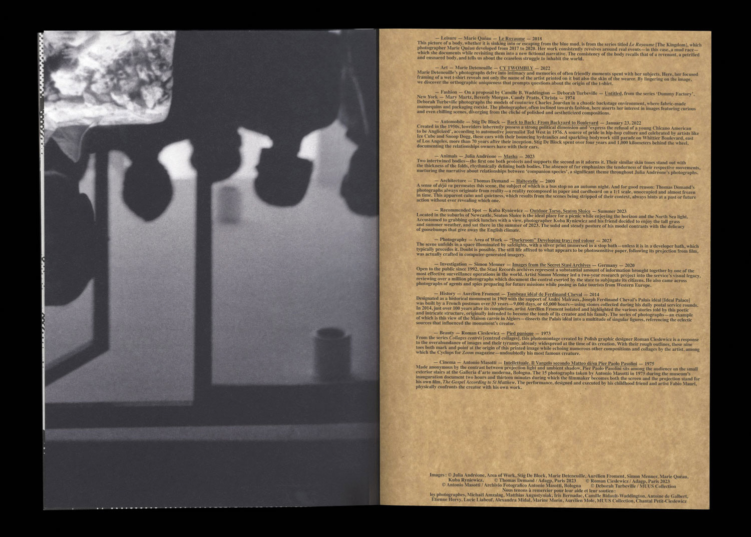 Julia Andréone, Area of Work, Roman Cieslewicz, Stig De Block, Thomas Demand, Marie Deteneuille, Aurélien Froment, Antonio Masotti, Simon Menner, Marie Quéau, Kuba Ryniewicz, Deborah Turbeville